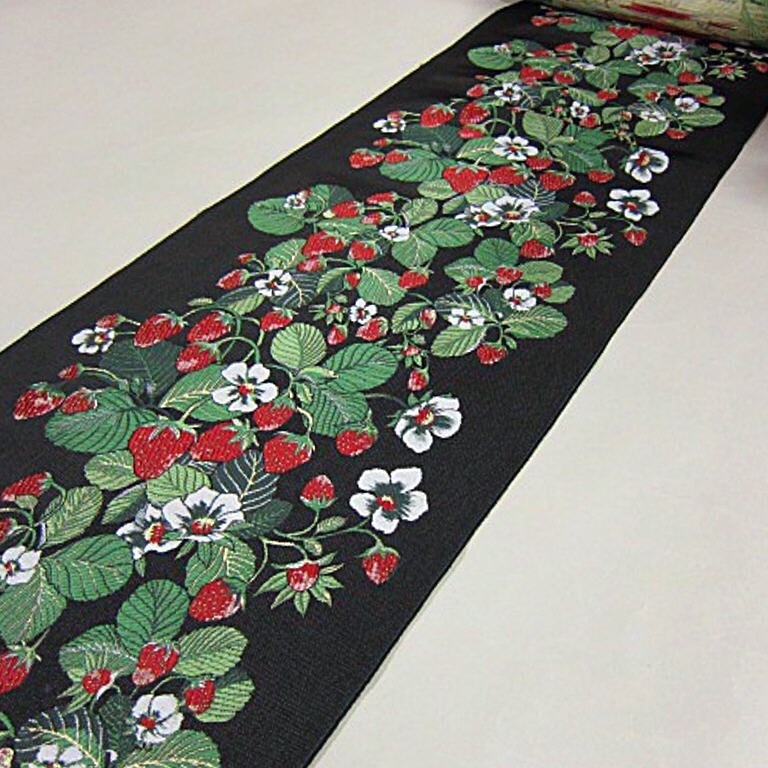 - 新柄 新品未仕立 西陣織高級六通柄丸巻袋帯 いちご 苺 黒地