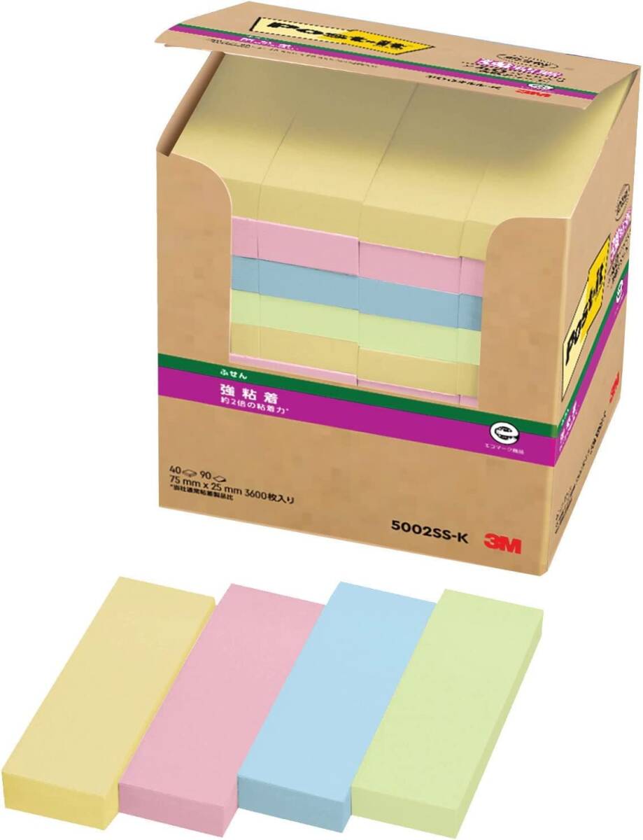- ポストイット 付箋 強粘着 ふせん パステルカラー 75×25mm 90枚×40冊 5002SS-K