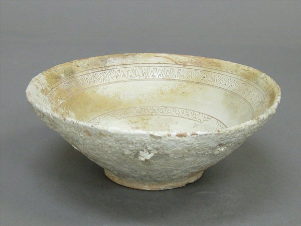- 【心庵】東ローマ帝国 12世紀 ビザンチン古陶 茎根彫 鉢 海揚り 付箱 B457
