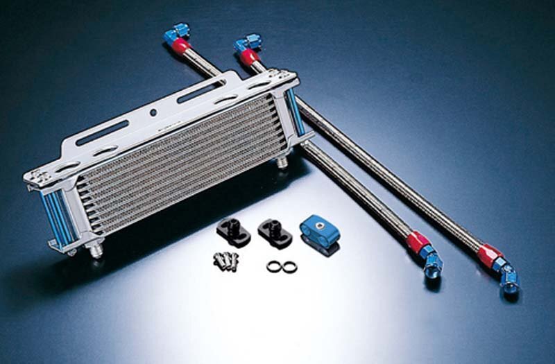 車種別オイルクーラーキットは、オイルライン取り出しや車体へのマウントステーを専用設計としています。