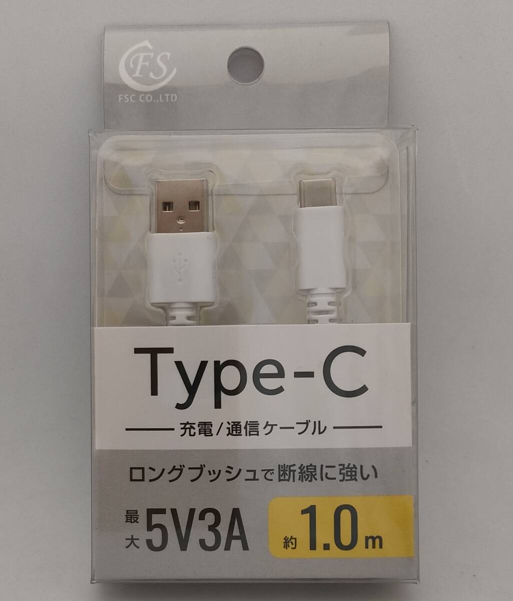 > 送料無料【訳あり・未使用品】Type-Cケーブル 1m ホワイト 5V/3A 急速充電■USB Type-A to Type-Cケーブル■充電/通信 タイプCケーブル
