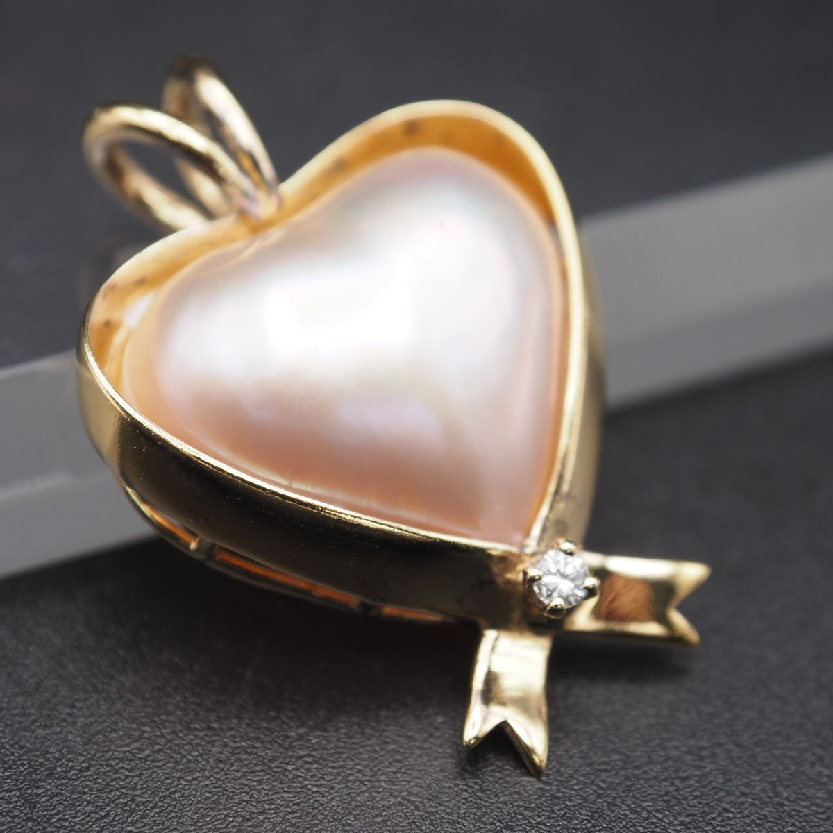 - G467 ハートマベパール 真珠 ダイヤモンド 0.05ct ペンダント トップ ピンク系カラー ゴールド デザイン チャーム ヘッド