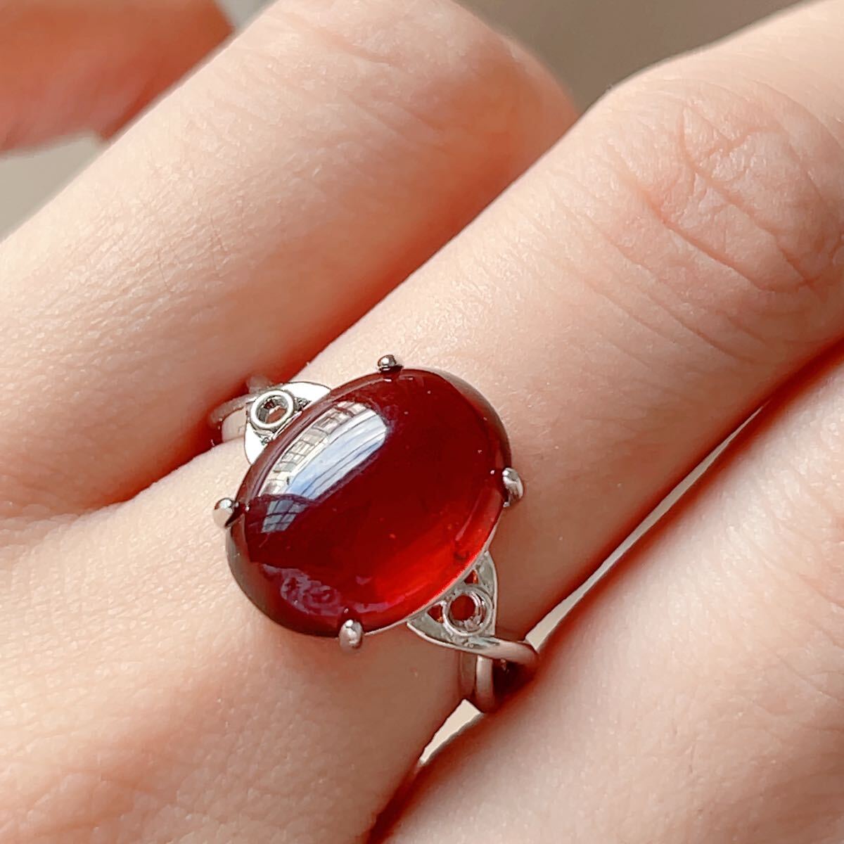 - ◇ブラッドアンバー(琥珀)◇リング◇指輪◇フリーサイズ◇天然石◇パワーストーン◇巾着袋付き◇プレゼントにも041R101533