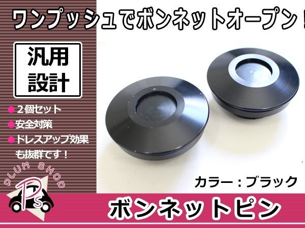 > 汎用 ボンネットピン クイックリリース クイックファスナー 直径62mm ロッド103mm 黒 ブラック 2個セット ワンプッシュ フラット ボンピン