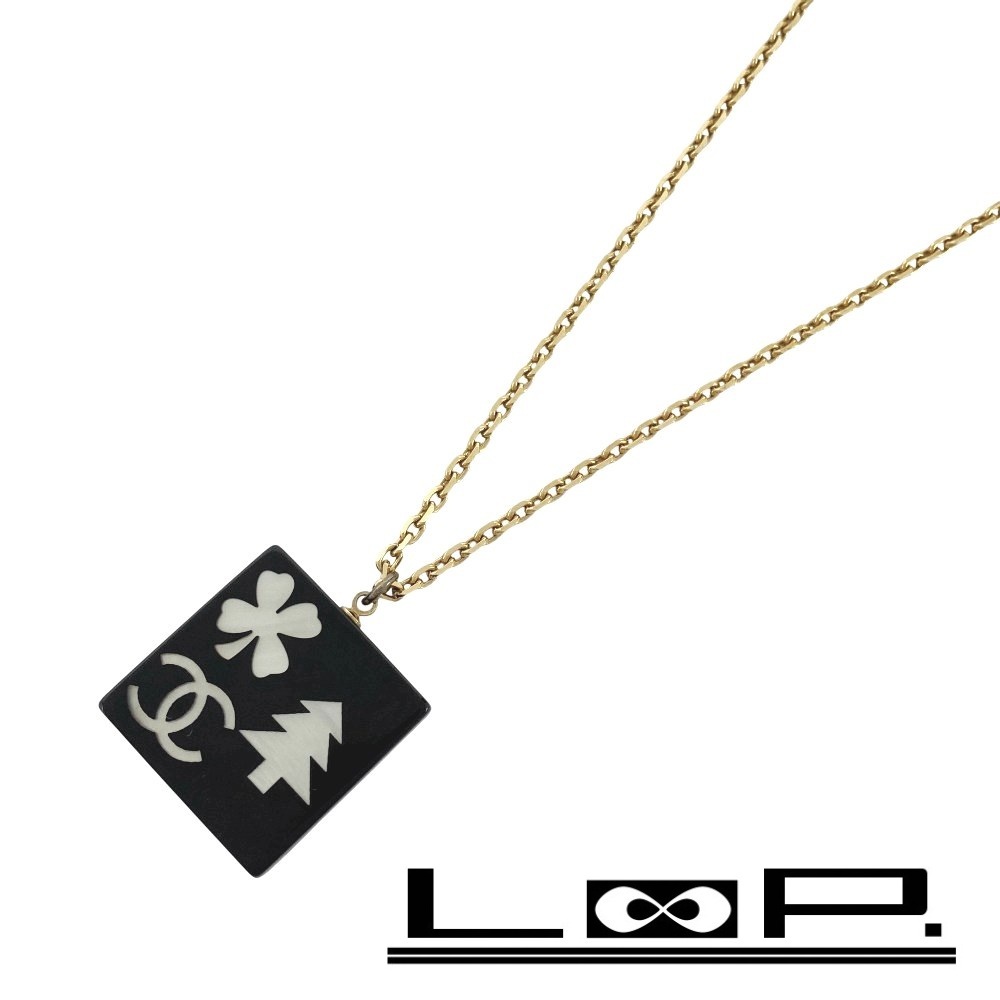 > ■美品■ シャネル スクエアプレート ネックレス アクセサリー クローバー ツリー ココ ブラック ゴールド GP 03A 【434402】5
