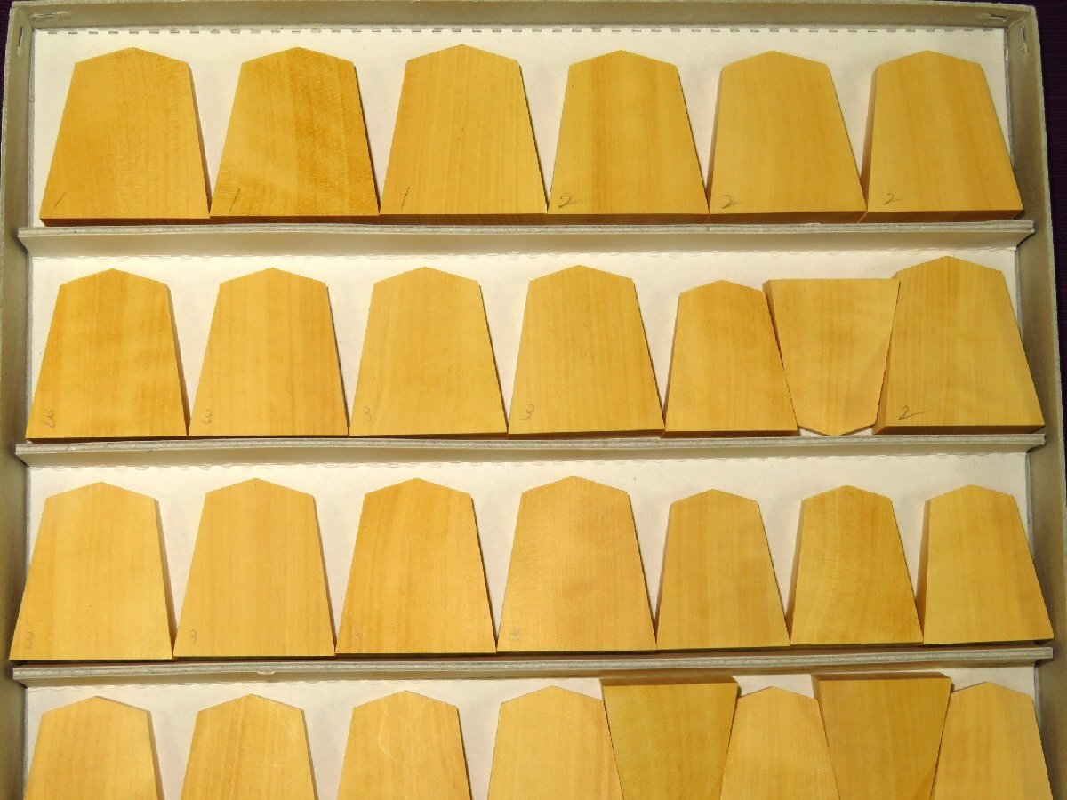 1000円スタート▲「富士駒の会」監修/島黄楊「斑入柾目系」将棋駒木地▲