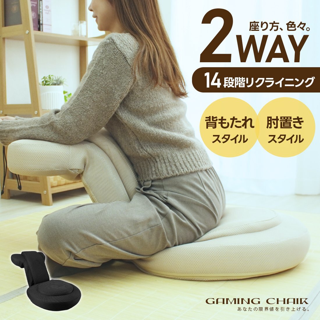 - 座椅子 リクライニング 肘掛付き 人気 腰痛 コンパクト おしゃれ ゲーミング座椅子 14段階 リクライニング クッション ゲーミング ソファ