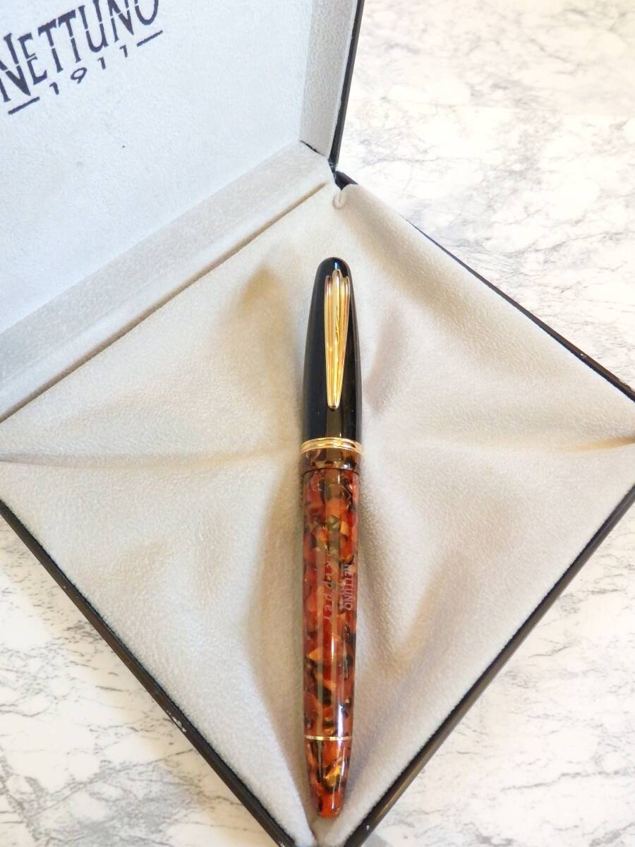 > ◆【極上物】【送料410円~】NETTUNO1911 ネットウーノ スキッパー万年筆 セルロイド・マーブル ペン先:18K750ソリッドゴールド M