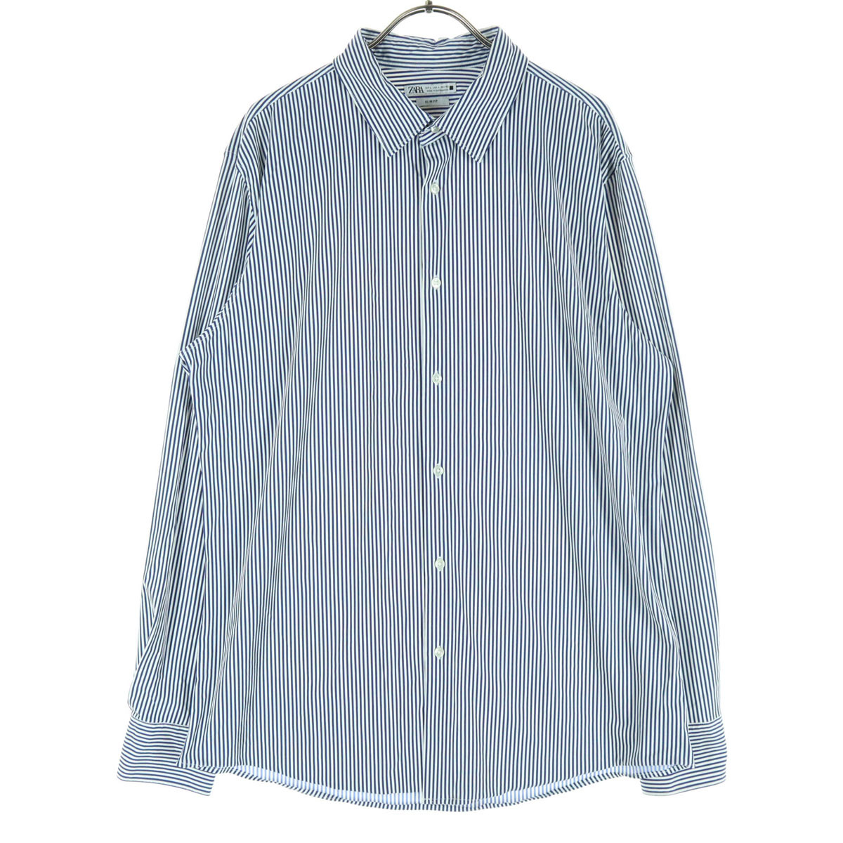 美品 ZARA ザラ ストライプ柄 長袖 シャツ L ネイビー メンズ