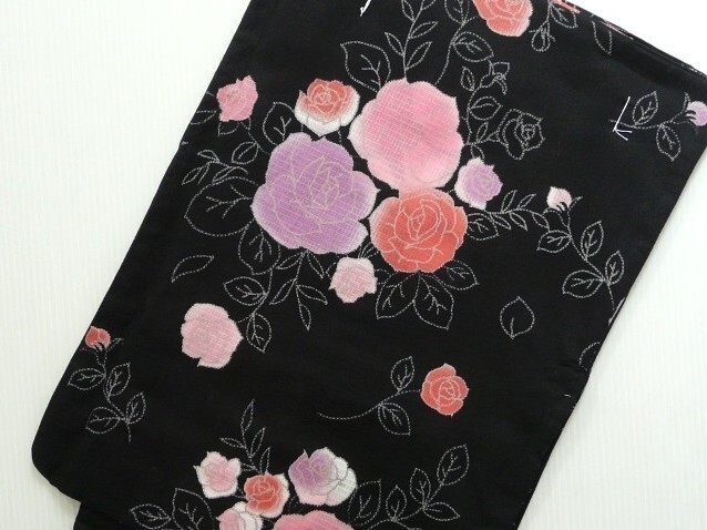 - 女性用 ゆかた 単品 浴衣 黒地にバラ柄 仕立上 綿紅梅 227
