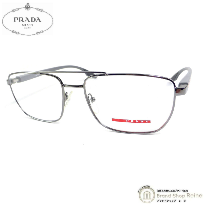 > プラダ (PRADA) プラダスポーツ リネア・ロッサ スクエア メタルフレーム メガネ 眼鏡 VPS53M シルバー×グレー(中古)