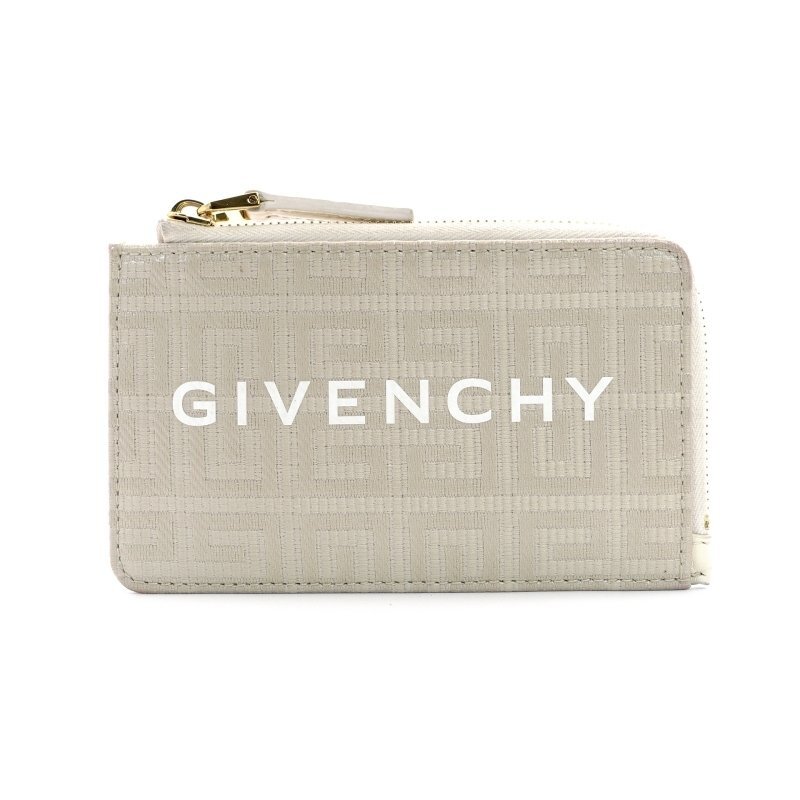 - 【1円スタート】ジバンシィ GIVENCHY コインケース ベージュ レザー ロゴ キャンバス カードケース ゴールド金具 7-7-140