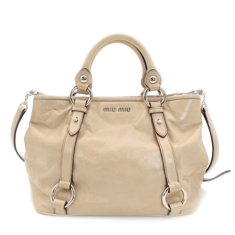 - ミュウミュウ MIU MIU ハンドバッグ パテントレザー ベージュ 2way RN0685 クロスボディ ロゴ シルバー金具 7-9-757