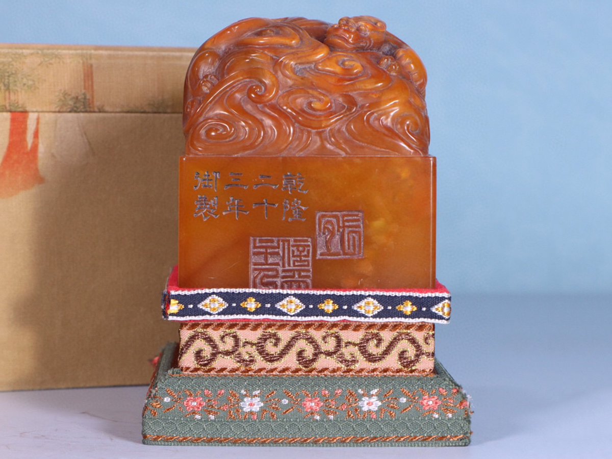 - ▽鴻▽清朝時代 寿山石 田黄石彫 龍鈕寶璽大印章 乾隆二十三年御製 箱付 時代物 中国古美術 骨董品