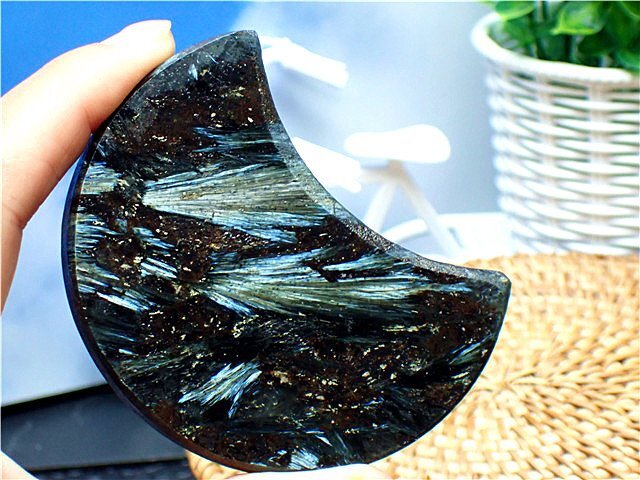 天然石高品質(藍タイチンルチル入り)虎目石原石YT4A3-10A07