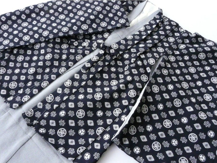 - 洗える着物 男の子 アンサンブル 5才 羽織 着物 襦袢 紺×水色 112