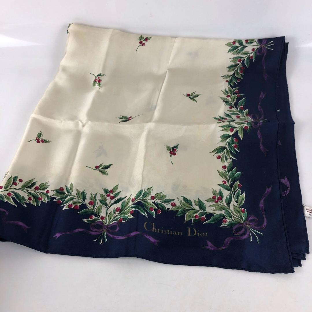 - Christian Dior ディオール スカーフ バンダナ ホワイト ネイビー