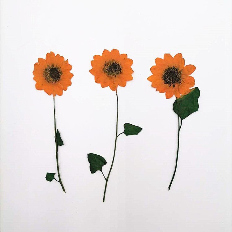 - 送料無料☆本物 押し花 素材 ハンドメイド 花材 10枚 押し花 ミニヒマワリ オレンジ染 ひまわり