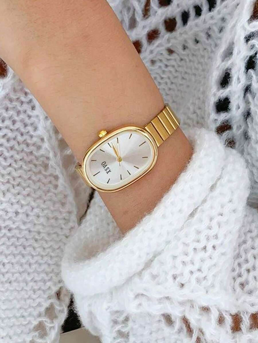- 腕時計 レディース クォーツ 1個 レディース ミニマリスト オーバル型 ファッション スタッズ 小さな文字盤 竹ベルト クォーツ