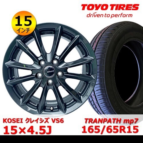 - 送料無料 新品 タイヤ& ホイール 15インチ4本【KOSEI クレイシズ VS6 15×4.5J +45 100x4】+【トーヨー TRANPATH mp7 165/65R15】QHOT-91