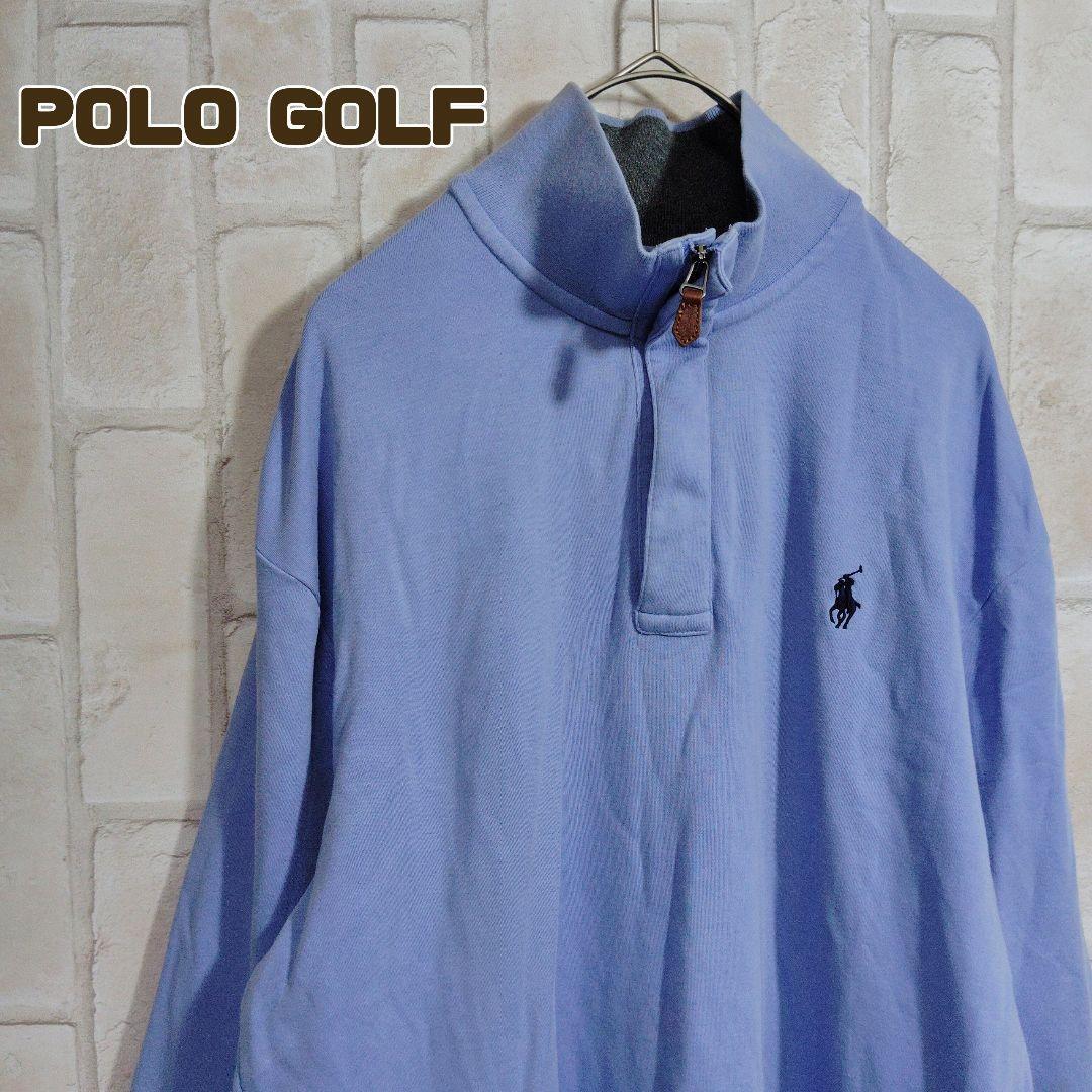 - ポロゴルフ スウェット トレーナー 薄手 水色 ハーフジップ 刺繍