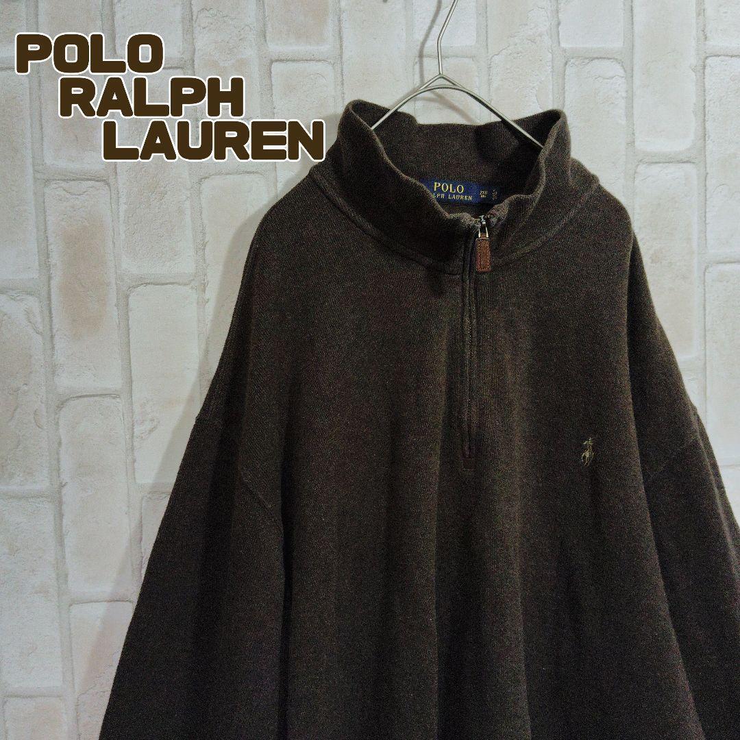 - ポロラルフローレン スウェット ブラウン ハーフジップ 刺繍 ロゴ 2XL