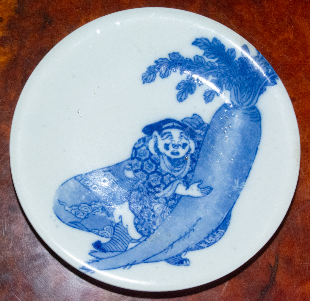 - 時代 印判手 大黒天に二股大根 七寸皿 直径22cm 商売繁昌 縁起物 和食器 飾皿