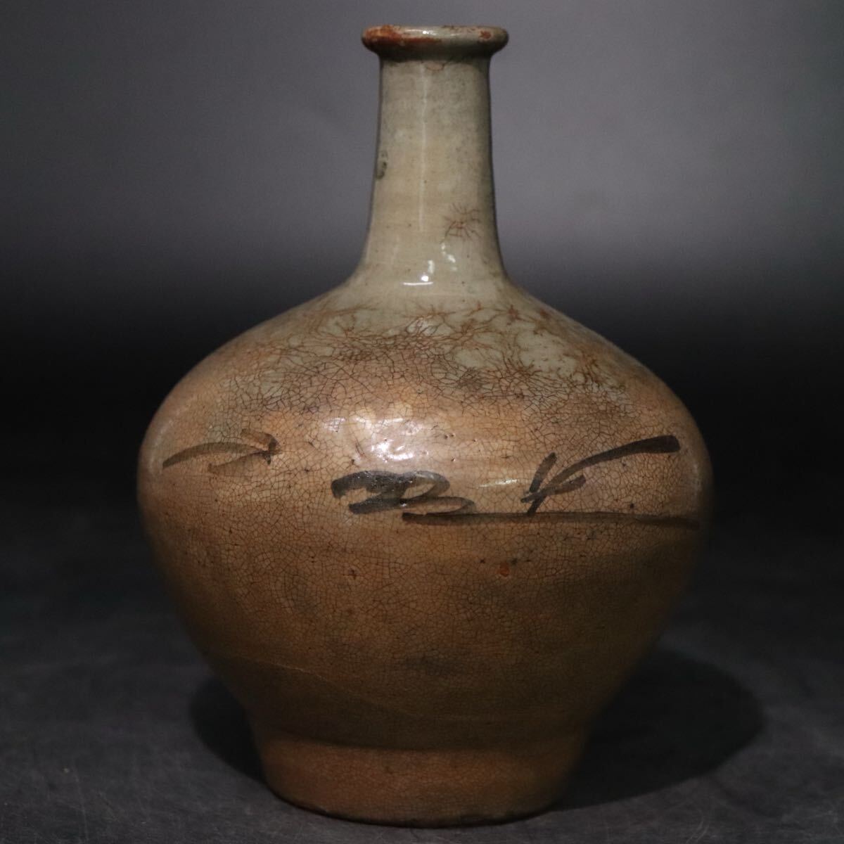 > 時代 古唐津 黒牟田 御本 ・ 鉄絵 花瓶 / 絵唐津 壺 花器 煎茶道具 雨漏り手 雨漏り .B1260