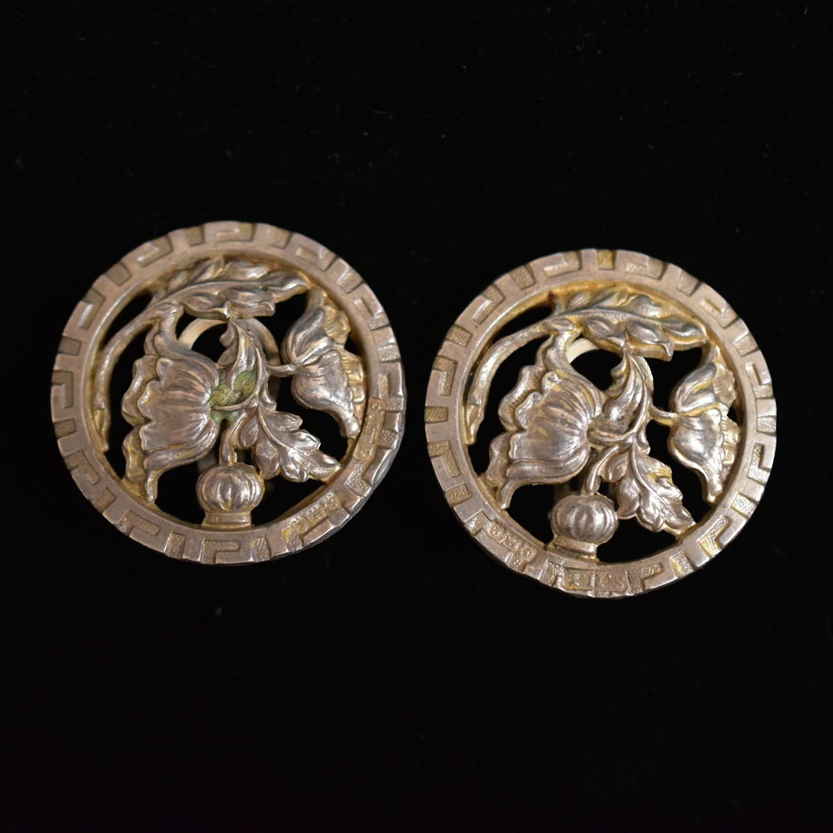 - 英国アンティーク 純銀製ホールマークあり 1902年製 バーミンガム アールヌーボーのポピーの花のクリップイヤリング 本物保証