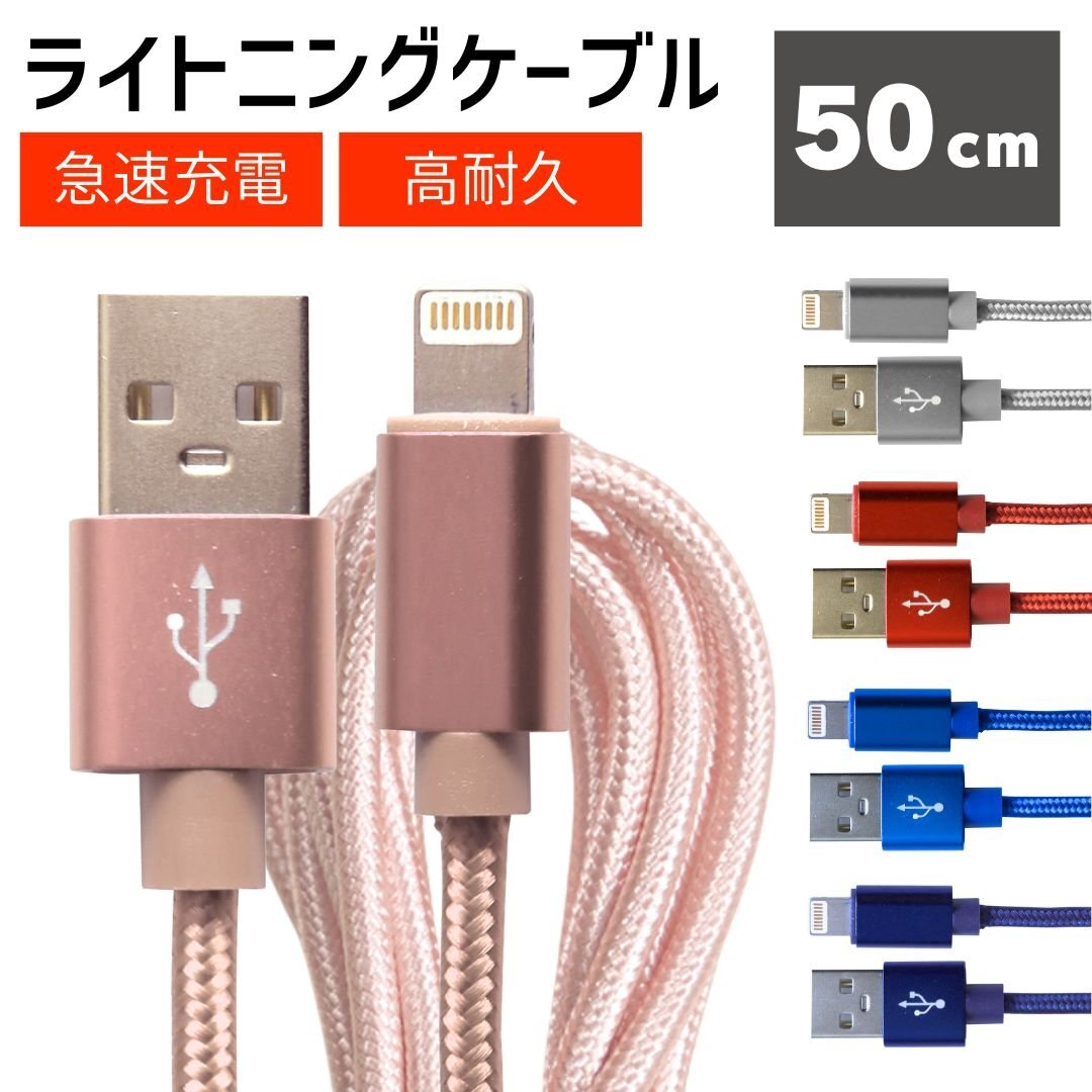 - 【ピンク】充電ケーブル 50cm iPhone Lightning ケーブル ライトニング データ転送 充電器 急速充電 モバイルバッテリー【送料無料】