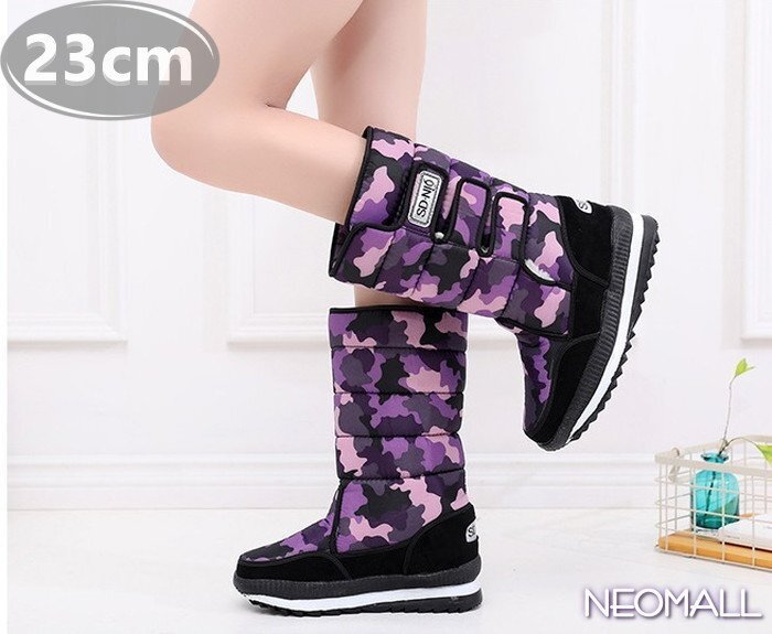 - レディース スノーシューズ 【867】 23.0cm 迷彩パープル ムートンブーツ スニーカー ウィンターブーツ 裏起毛 防水 防寒 防滑 冬用靴 綿靴