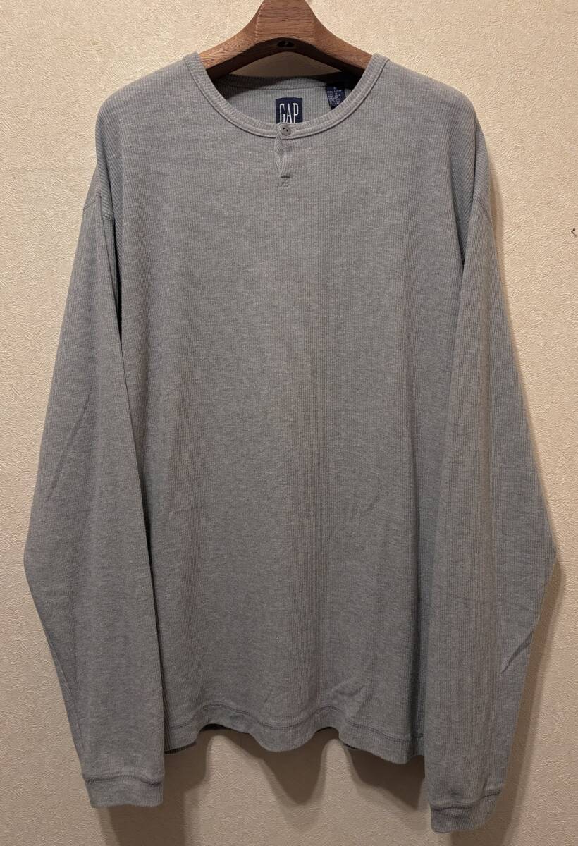 - 希少ヘンリー1ボタン90sビンテージGAPロングTシャツLヘビーウェイト杢グレー無地テレコ/リブ編み100%コットン90年代オールド長袖Tサーマル
