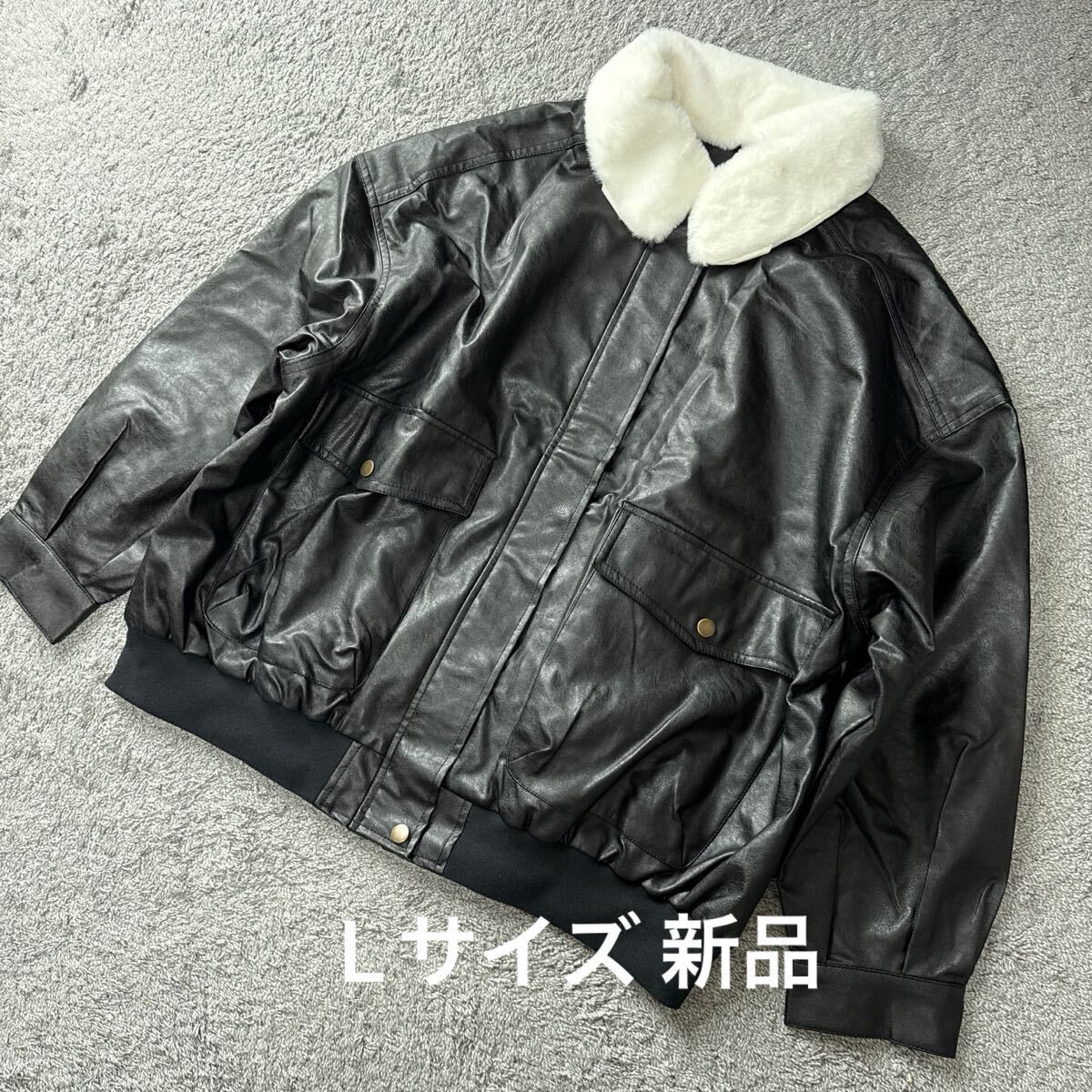 - 取り外し可能ファー付きフェイクレザージャンパー黒L★新品37