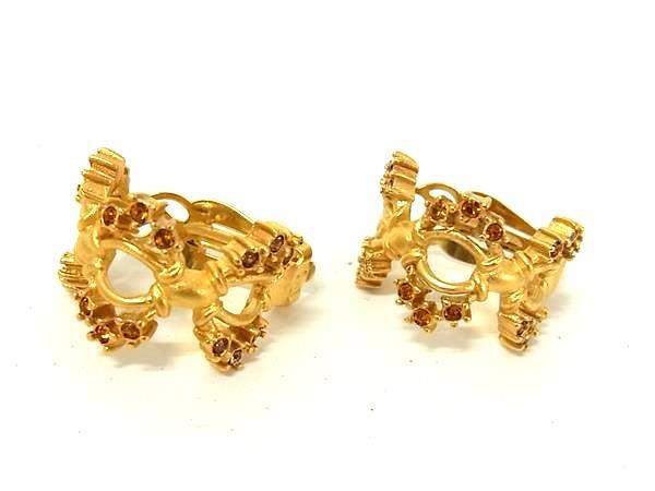 > ■美品■ NINA RICCI ニナリッチ ラインストーン クリップ式 ピアス アクセサリー レディース ゴールド系 DJ8399