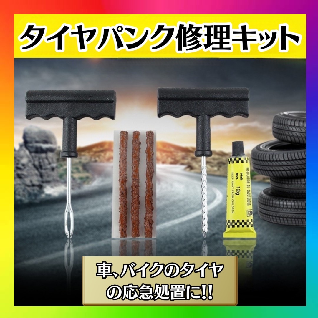 - パンク 修理キット タイヤ 自動車 応急 緊急 チューブレス 修理ゴム材3本付き