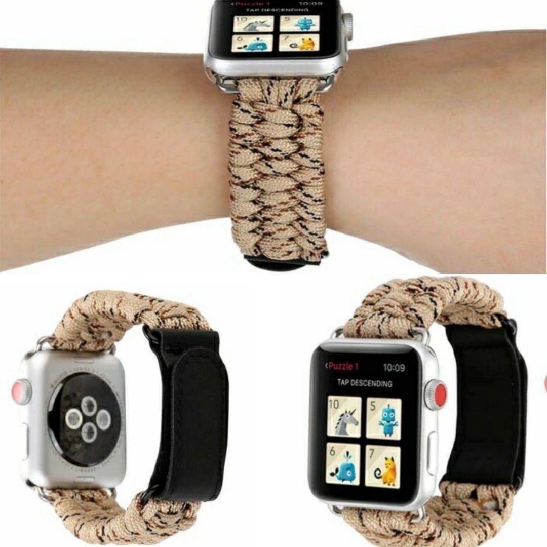 - H65★Apple Watch アップルウォッチ バンド ベルト ベージュ パラコード メンズ レディース 時計 スマートウォッチ アウトドア 42/44/45mm