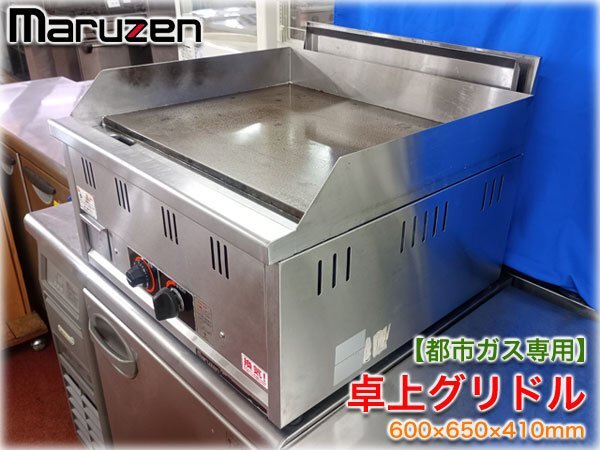 > マルゼン 卓上ガスグリドル 600x600x300mm 都市ガス 120~320℃サーモスタット付 鉄板焼機 ホットプレート 【長野発】