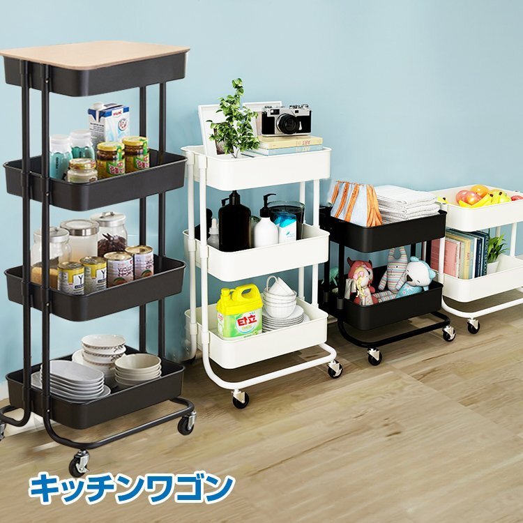 > キッチンワゴン バスケットトローリー サイド テーブル ツール ワゴン キャスター付き 4段 3段 2段 キッチン カウンター インテリア ny234