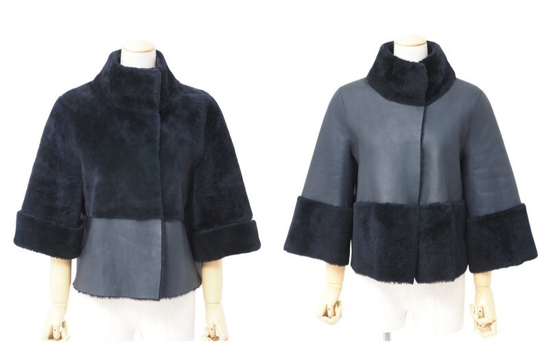 - MI1996□リアルムートン リバーシブル ファーコート レザージャケット 毛皮コート サイズM~L相当 ネイビー系