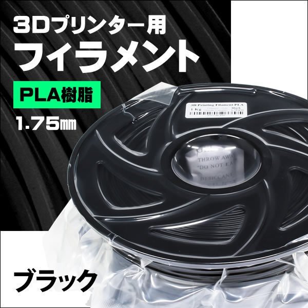 - 3Dプリンターフィラメント PLA樹脂 1.75mm ブラック(黒) 一年間の保証付き