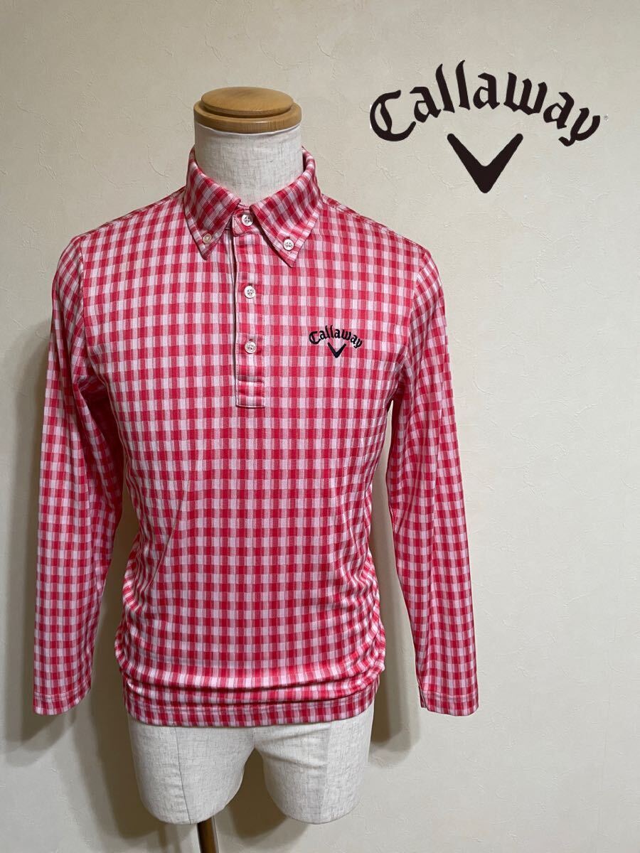 - 【良品】callaway golf キャロウェイ ゴルフ ウェア ボタンダウン ポロシャツ トップス サイズM 長袖 赤白 ギンガムチェック柄 241-156519