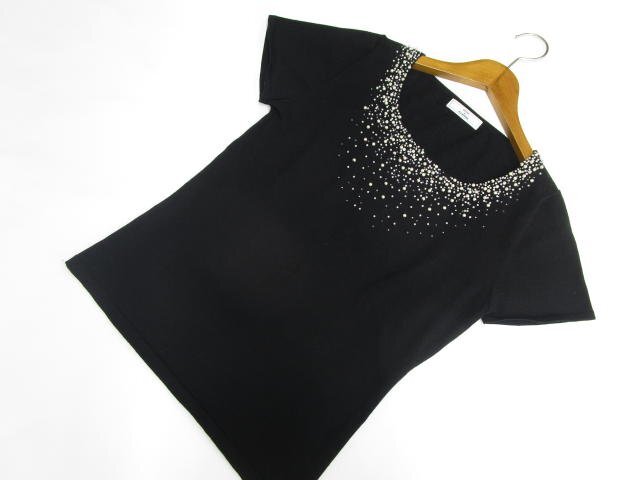 - 美品 ネットディマミーナ NETTO di MAMMINA 半袖 ラウンドネック 洗えるニットカットソー L ブラック 【メール便可】