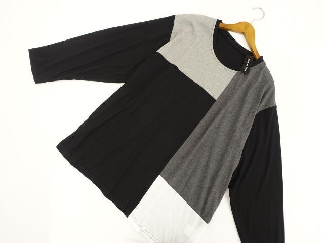> 大きいサイズ メンズ 新品タグ付 vide et bois 長袖 クルーネック カットソー 8L ブラック地 ダークグレー×グレー×ライトグレー