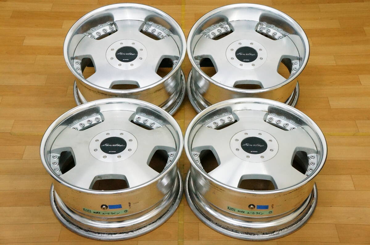 > K1293【希少】WORK ユーロライン ☆ PCD114.3 8J+30 9J+35 当時物 深リム シャコタン