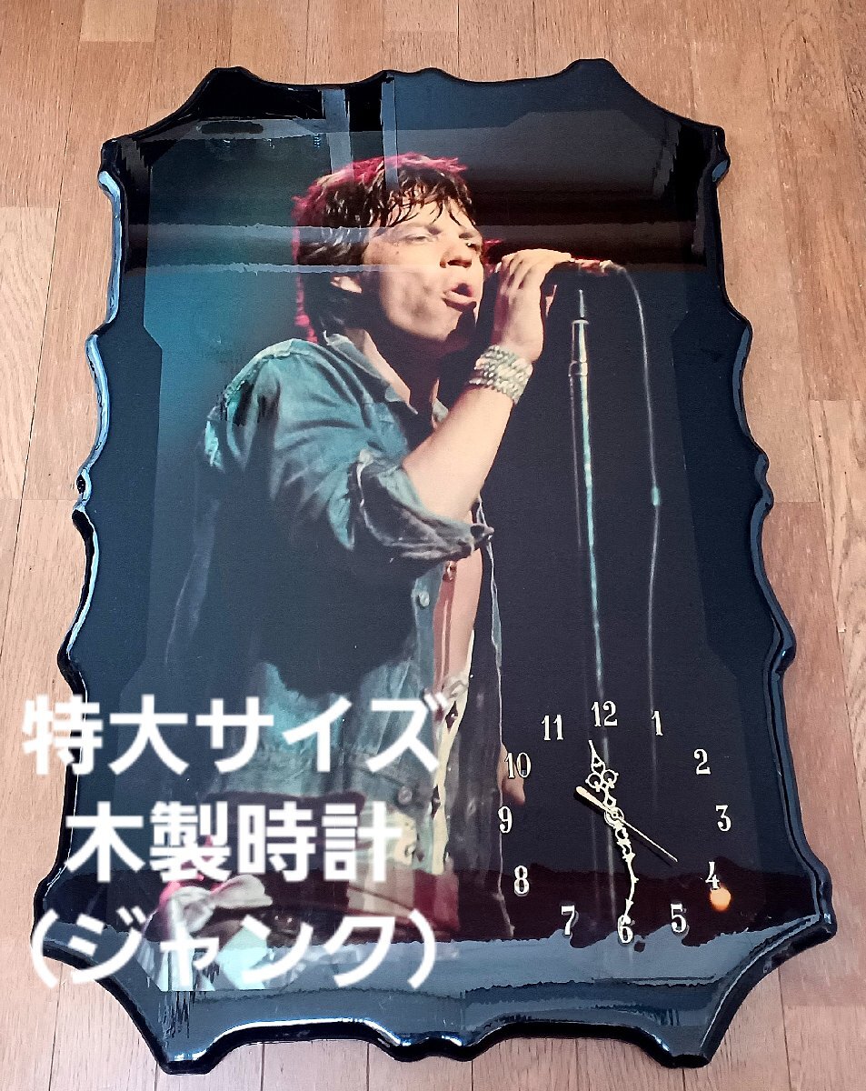 大きすぎて送料が5,000円くらいかかってしまうので、京都の店舗ハッピージャック店頭受取リ限定とさせていただきます。お渡しの際、商品を入れる袋類ありません、リアルに現物渡しになります(送料がかかっても良いよというお客様は落札後にコメントやお電話などでご連絡をください。送料別途計算で発送いたします!) ローリング・ストーンズのフロントマン、ミック・ジャガーの写真を使用した、特大サイズの木製壁掛け時計です。存在感のあるビンテージ仕様で表面にツヤもありとてもカッコよいです。時計部分は針のゆがみあり、動作未確認のためジャンク扱いです。背面に経年劣化や傷みあり。 インテリアやディスプレイにいかがでしょうか。動作品としてではなく、飾り用としてお考えください。 This is a large wooden wall clock featuring Mick Jagger. The clock is untested (junk item). Sold as-is.