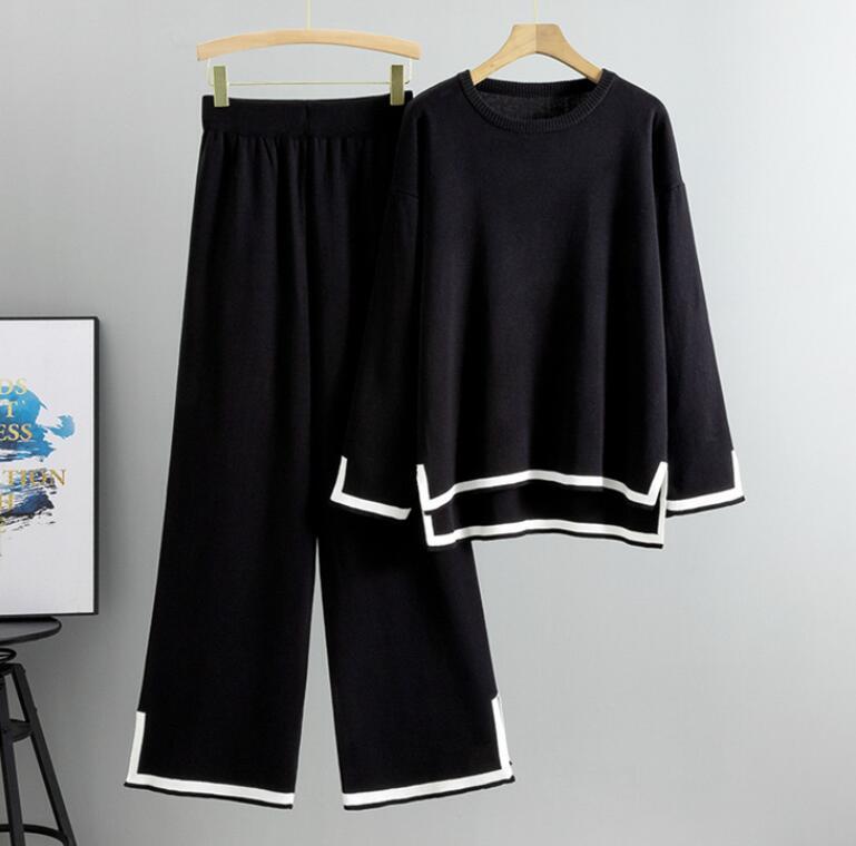 - M1015 パンツスーツレディース● 着心地抜群 20代30代40代 ● ニット素材 秋冬 2点セット black