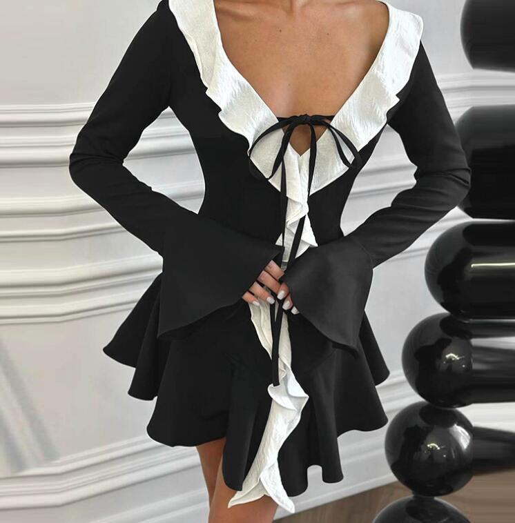 - M1016 ワンピースレディース● 着心地抜群 20代30代40代 ● 新作 長袖 sexy ミニ丈 フリル