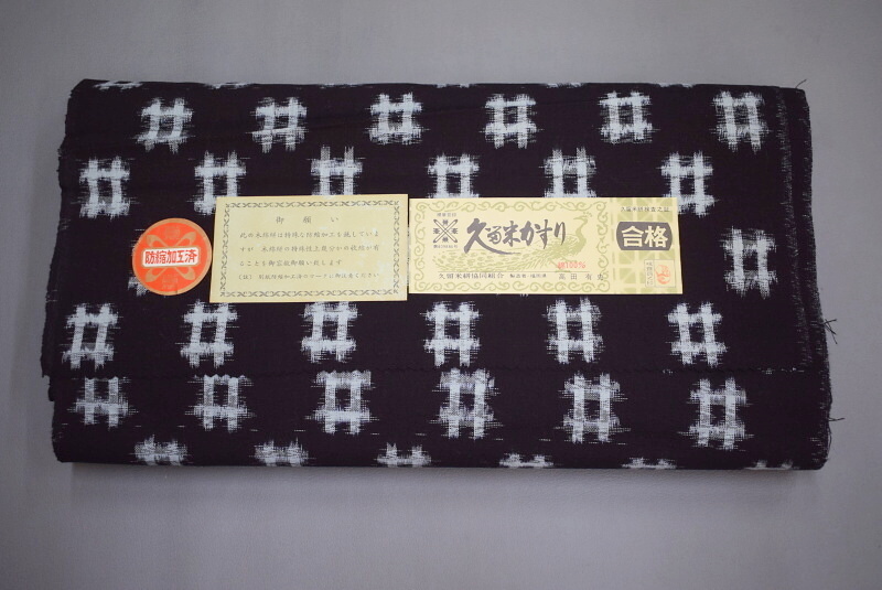 - B22-4【凛々】新古品 久留米絣 綿かすり 着尺反物 紺 井桁 未仕立て品