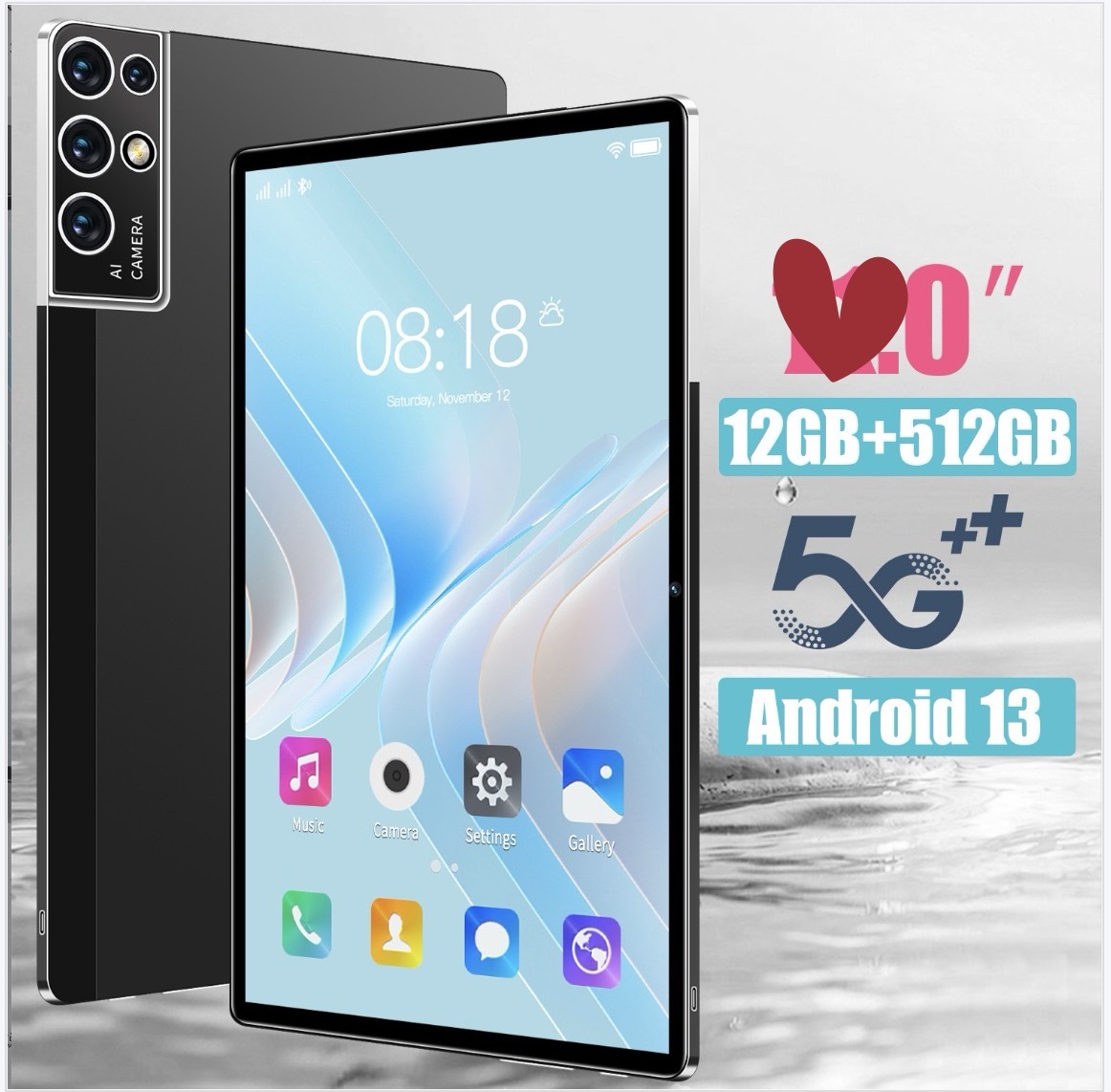 > 1円~タブレット 10core メモリー12GB ストレージ512GB 液晶サイズ 10.1インチ ファームウェアAndroid 13.0 解像度:16MP+32MPブラック