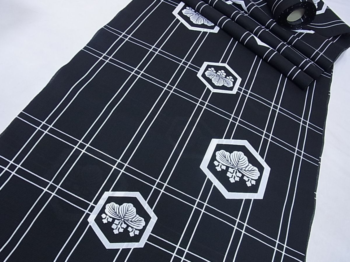 > eふれんず◆夏物 小紋 反物 着尺 紗 亀甲桐文 黒色 未使用品 美品 未仕立て◆bm1851
